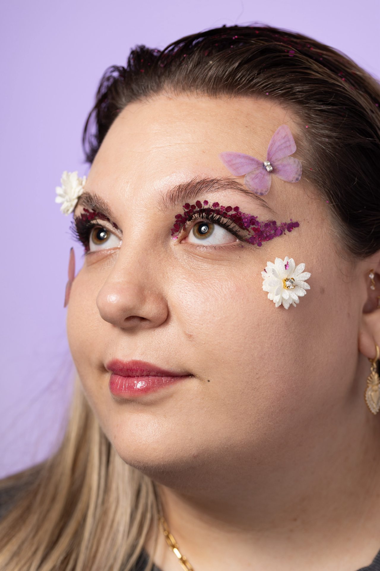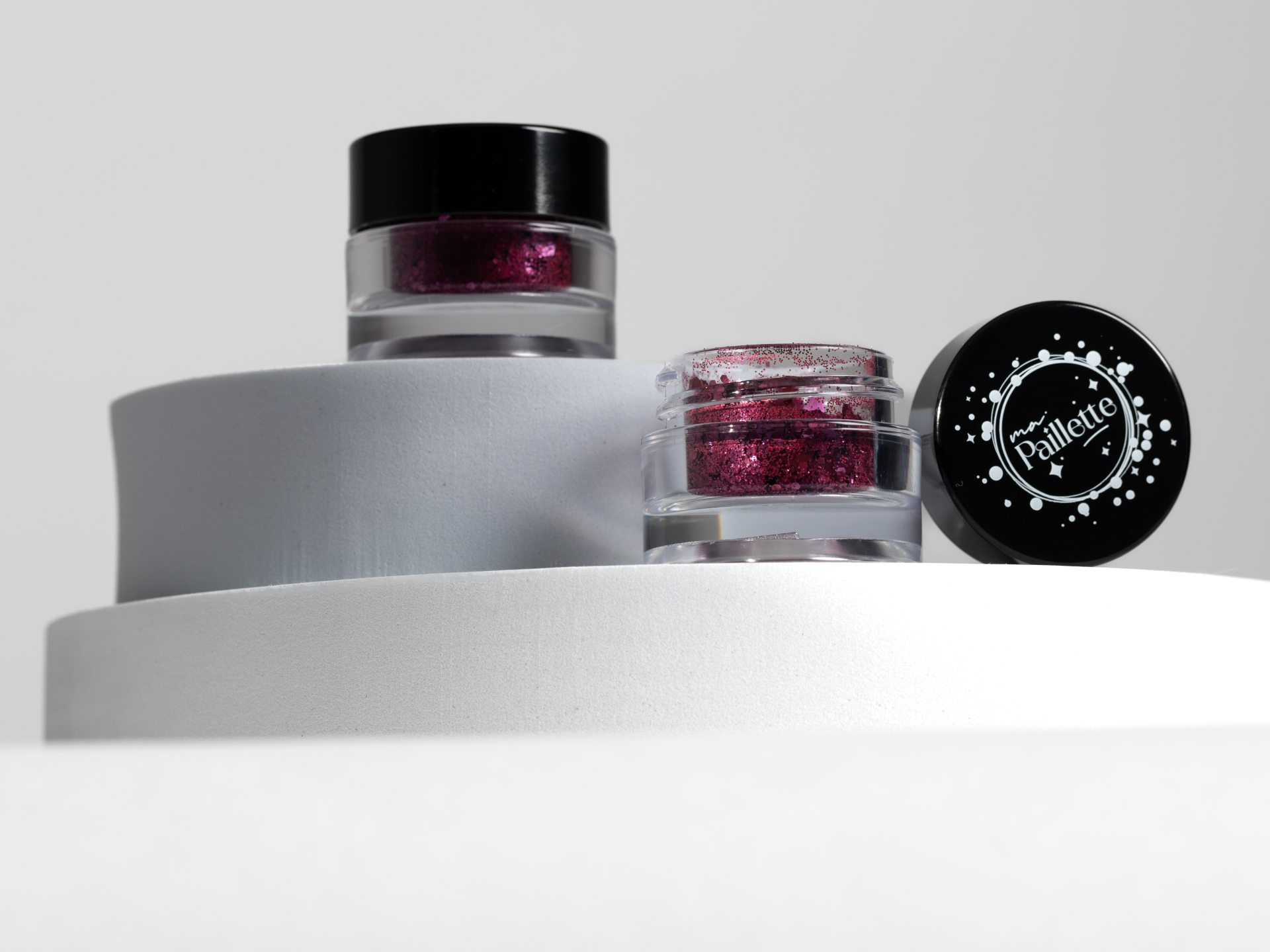 Prélevez les paillettes à l’aide de votre doigt ou d’un pinceau et appliquez les sur votre visage, corps ou cheveux.